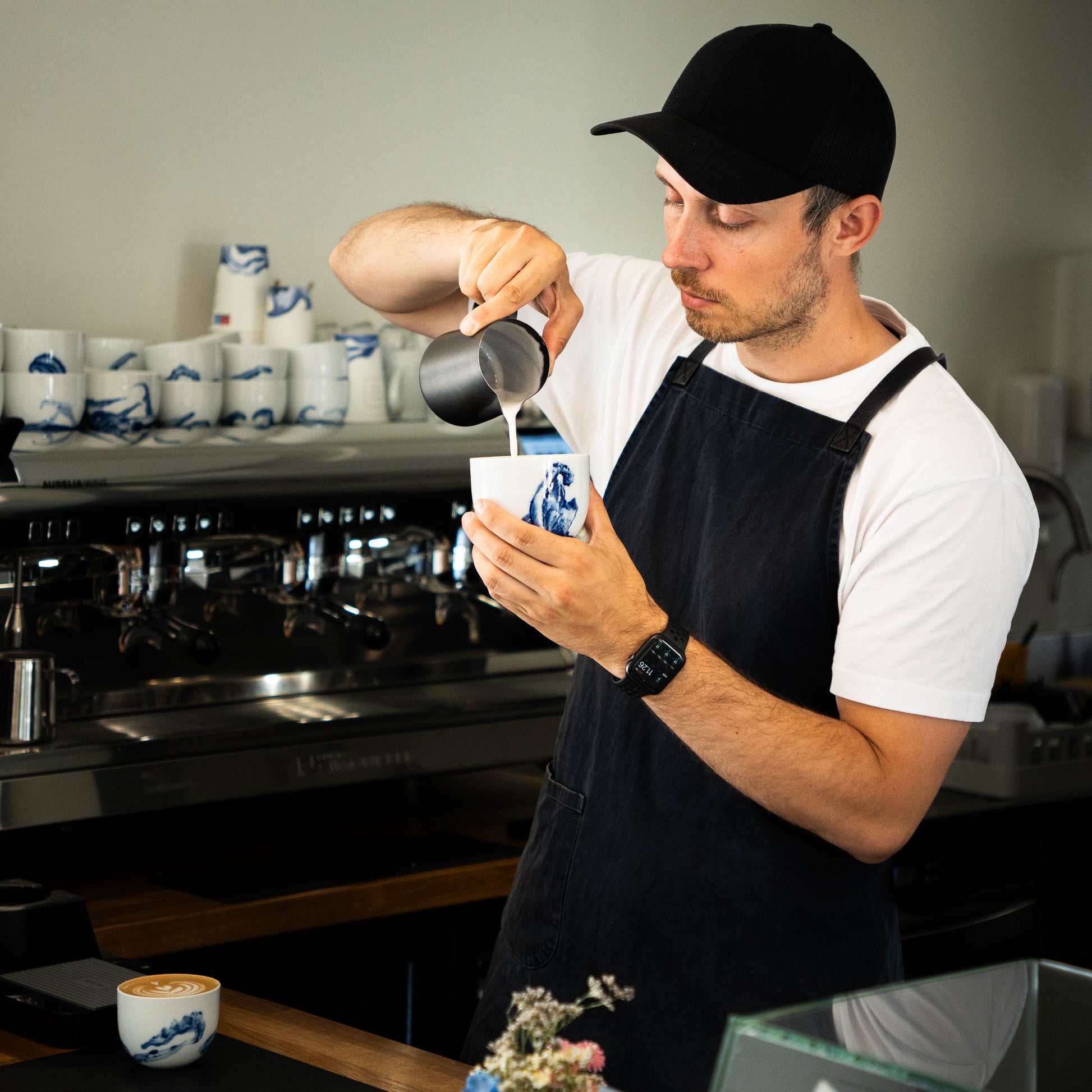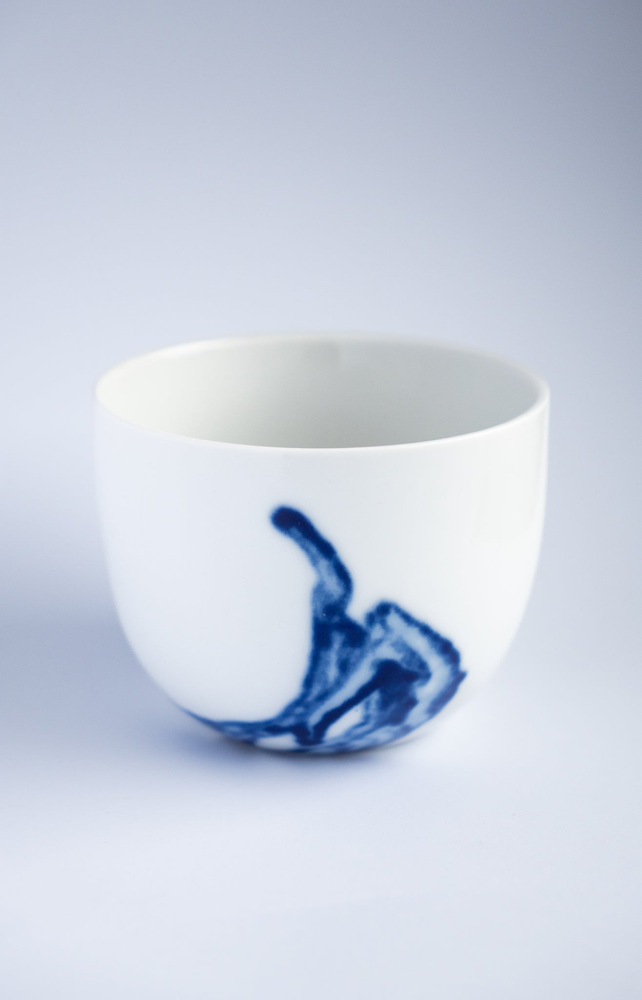 The cup is made of high-quality porcelain and features our signature blue design that resembles the waves of the ocean. This design is fully handmade and due to a special painting technique - every single cup is completely unique and one of a kind.